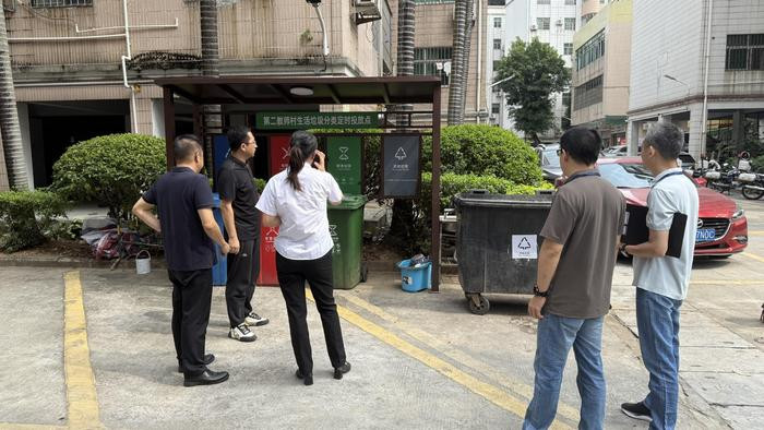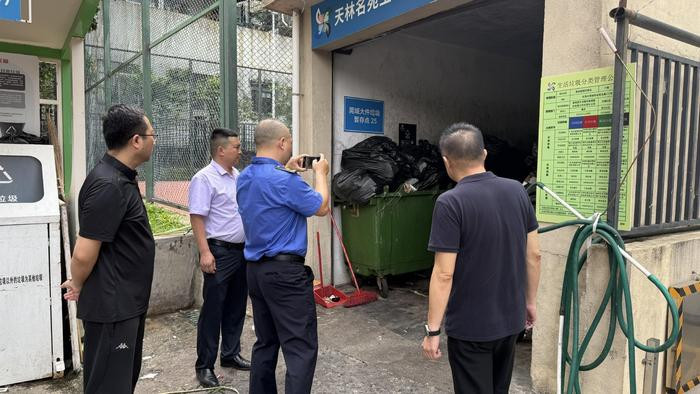 检查围绕垃圾分类宣传、分类指南设置、垃圾收集容器配备、垃圾分类投放、收集和运输环节等重点环节展开。联合执法检查小组通过小区内走访的方式,重点对生活垃圾分类点位进行逐点检查,督促相关责任单位落实分类责任,引导居民养成正确分类投放习惯。